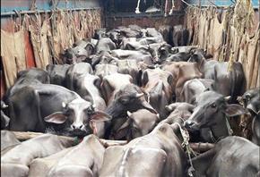 肉用コンテナトラックで59頭の水牛がハリヤーナ州からケララ州に救出