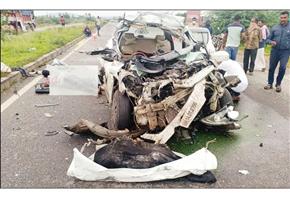 車がチトラドゥルガ近くのトラックに衝突したときに2人が死亡しました。女性を含む他の3人は重傷を負った。悲劇はマラサからティルパティに戻る途中で起こりました。
